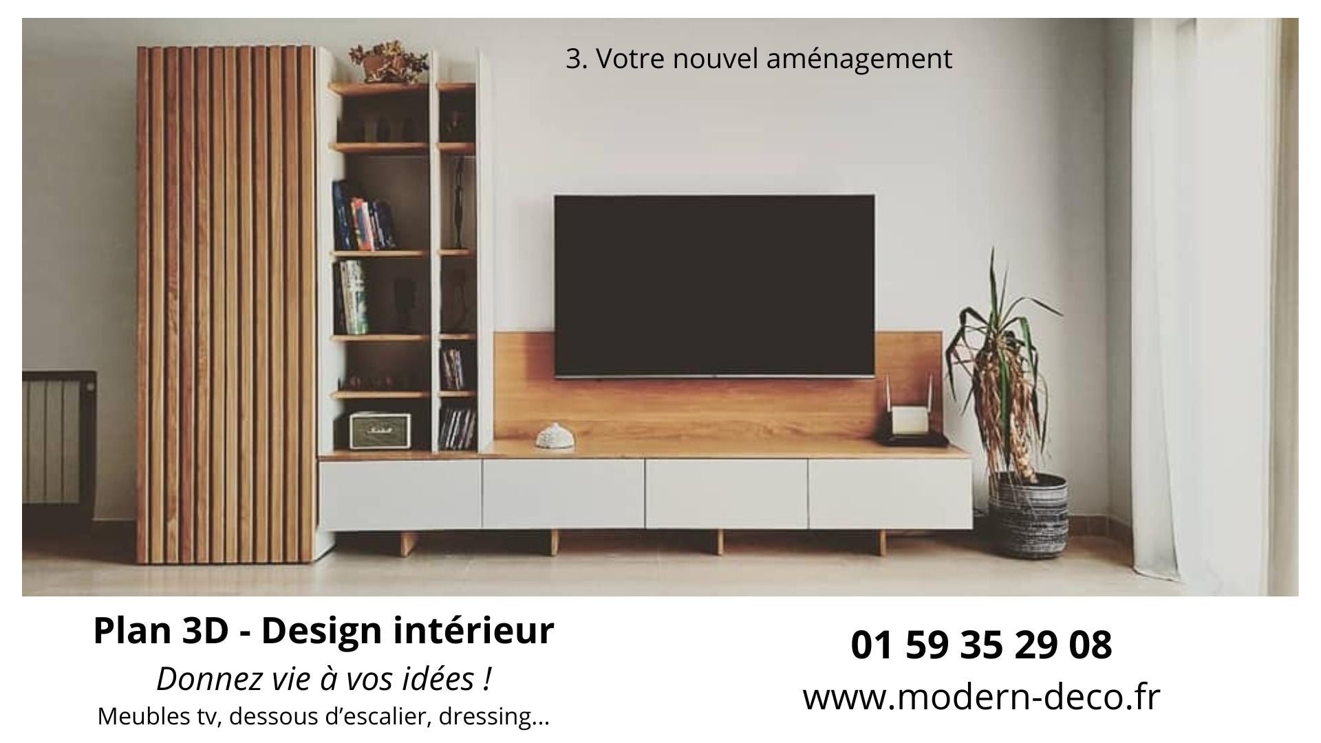 Meubles tv, dessous d'escalier, dressing... Avec des photos et quelques mesures, nous pouvons étudier votre projet.